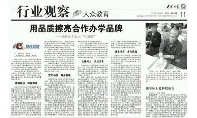 《大众日报》为乐玩官网中外合作办学品质点赞